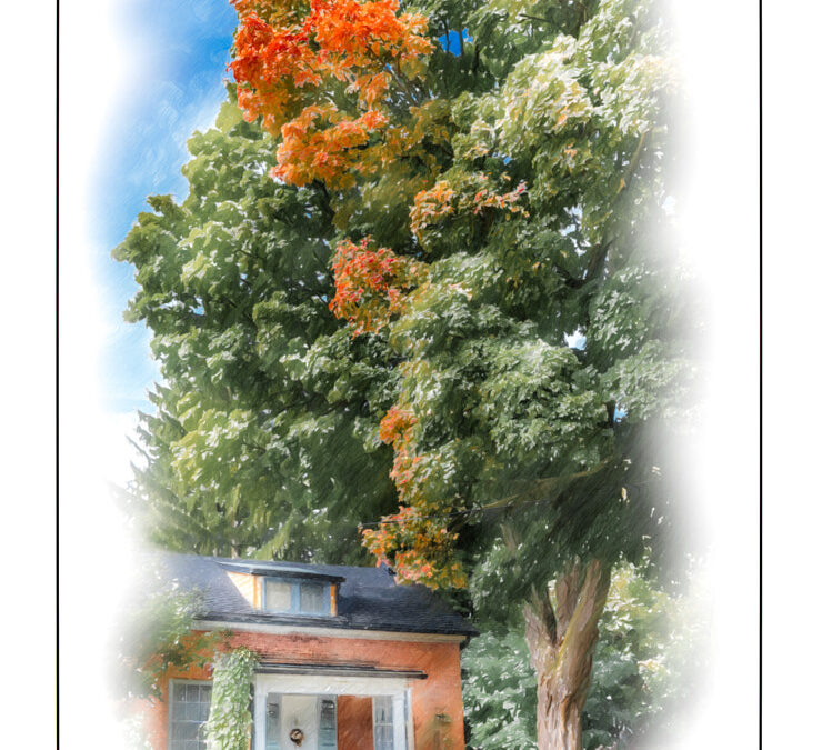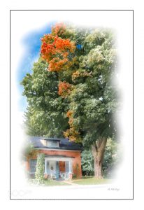 This cottage seems to be dwarfed by the huge maple on the property. What else is striking is that when the leaves begin to change there seems to be a line of red leading from the house to the tree. Almost like there is a bond between the two. Just my imagination I guess.